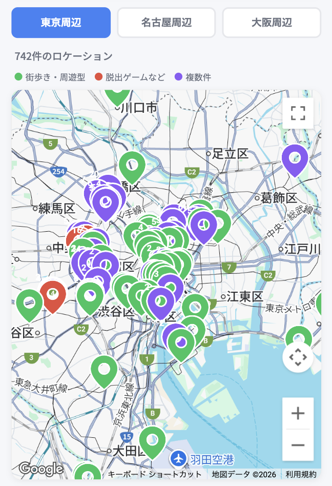 エリアから謎解き・脱出ゲームを検索